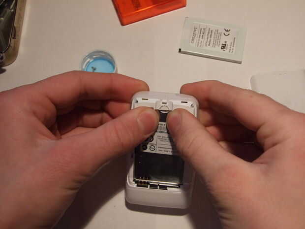 2) empújelo hacia la etiqueta de garantía con los pulgares, debe moverse ligeramente y copiar la etiqueta de garantía