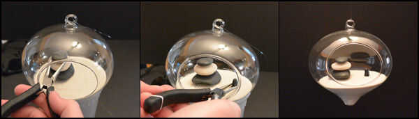 Tomar la pila de guijarros y colóquelo con cuidado en la arena, un poco fuera del centro – manos constantes realmente ayudar con esto! Para completar el efecto de Zen, tome una piedra negra pequeña, oblonga y colóquelo frente a la pila de piedra.