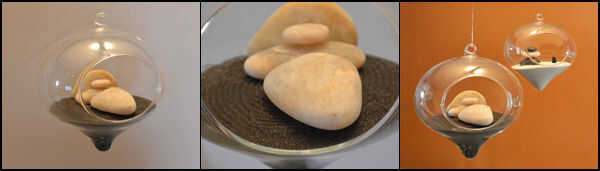 Para lograr un sentido de la "asimetría equilibrada", hice una con arena negra y una formación de roca diferentes. Estos dan mi comedor un acento limpio y simple, y me encanta la manera en que parecen "flotar" en el aire!