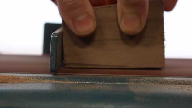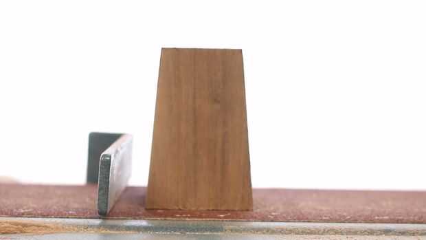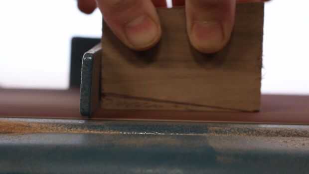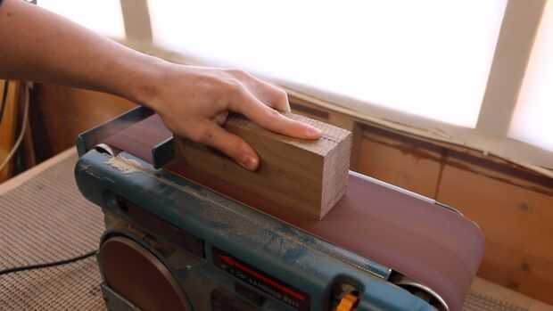 Quería añadir una sencilla conicidad en la base. He medido en 5mm desde todos los lados en el borde superior y trazó una línea desde ese punto a la parte inferior. Esto me dio lineamientos a trabajar demasiado. Porque es tal un taper pequeño que decidí usar la lijadora de banda para trabajar en la línea. No tarda mucho en todo.