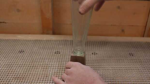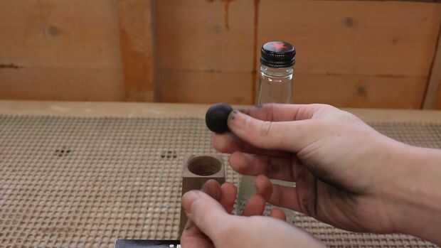 ¡ Seguí revisando la profundidad del agujero con la tapa de la botella. Taladre el agujero lo suficientemente profundo que se oculta la tapa y la rosca de la botella.