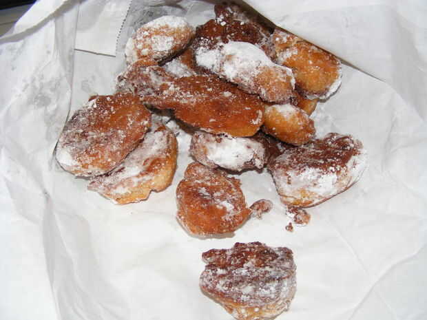 Zeppoles son piezas de dulce masa frita que se recubren con azúcar en polvo. Son un elemento básico de vendedores ambulantes en ferias al aire libre y uno de los favoritos aunque los precios han disparado para lo que obtienes. Son similares a los buñuelos pero probablemente este sería par de un bonito tiro del espresso para el postre.