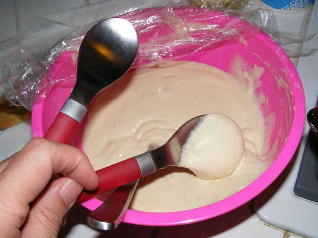 Utilice la otra cuchara para despegar la masa limpia de la cuchara.