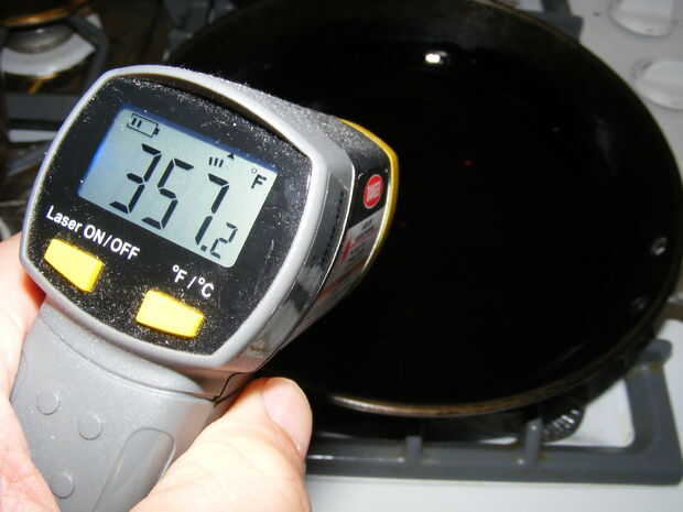 Agarra dos cucharas para crear gotas se deslicen suavemente en el aceite caliente.