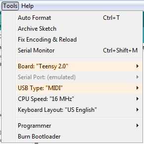 Guía de PJRC.com y todo el software apropiado está instalado. Al usar el Arduino IDE Asegúrese que en el menú de