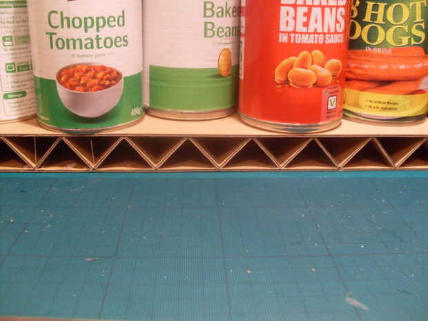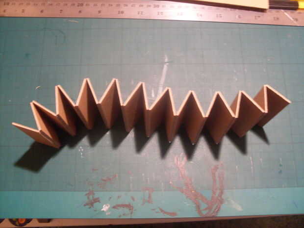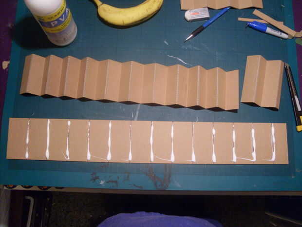 La primera capa necesita 3 tiras de tarjeta, una pieza más para crear el zig-zag y dos piezas de' sandwich'