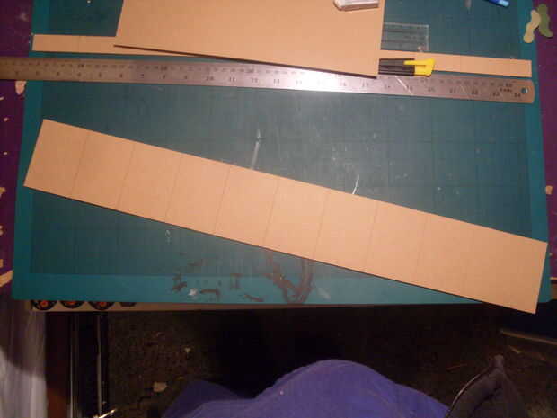 Marcar y anotar su pieza más larga a intervalos de 42mm a cada lado, asegúrese de Escalonar las líneas así que cuando lo obtuvo se pliegan correctamente (Fig. 2)