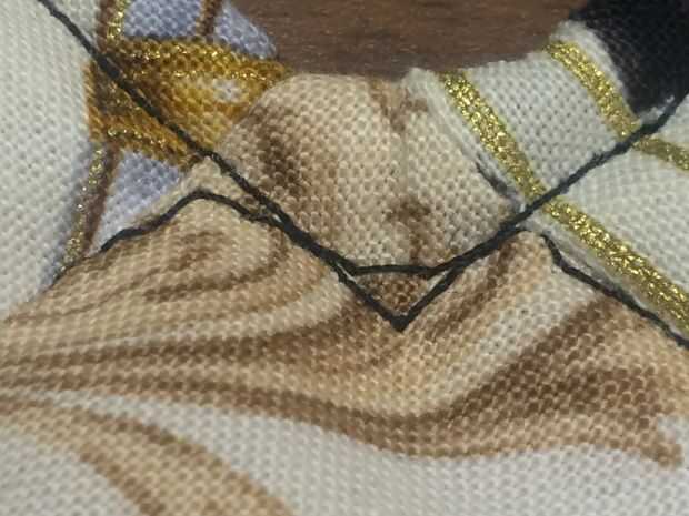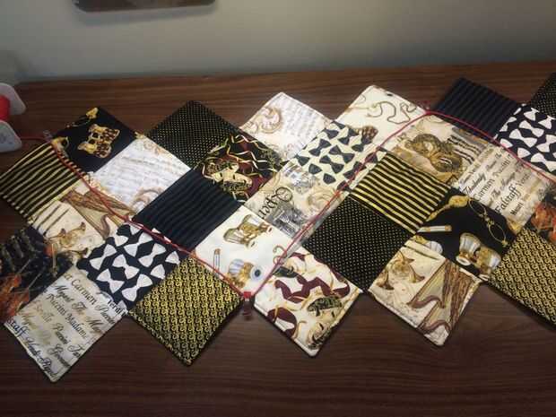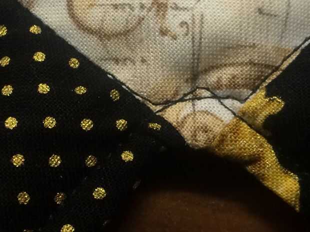 **Note** esta hojas de estilo de acolchar las conexiones de borde con costura pespunte quede igual línea un poco desordenado, ver foto. interior de las esquinas no se alinean uniformemente con la zanja, dar el salto a través de esa brecha poco como cerrar como sea posible y no se preocupe sobre él demasiado, su corredor de la tabla no un vestido de noche.