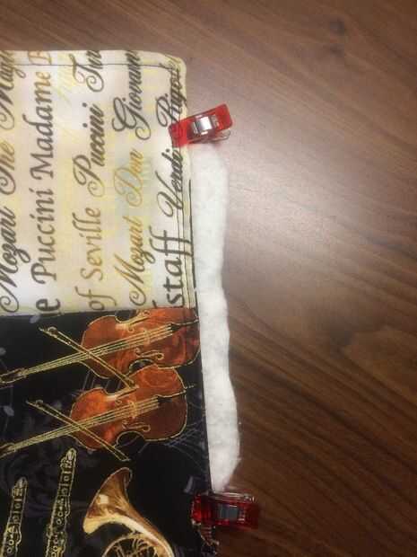 PIN o clip cada interior esquina y exterior punto (ver foto) juntos para evitar que se mueva mientras aquí el corredor en zigzag.