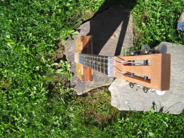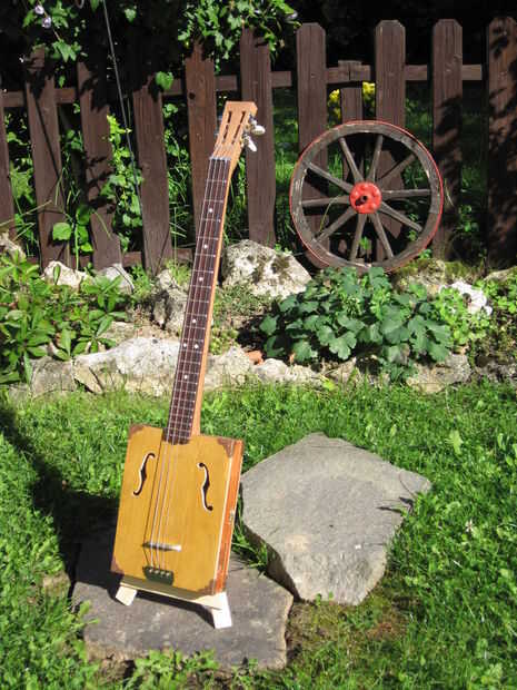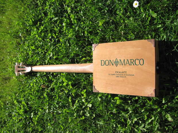 hace aproximadamente un año, comenzó a construir una guitarra de caja de cigarros para un amigo mío como un pedazo de encargo. Fue mi primer CBG, pero no el primer instrumento que construyó. Se llama Zigarrocaster No1 (compuesto de la palabra alemana para cigarro, Zigarre y obvio "ruedecilla" de Strato y Tele-la fama)