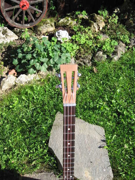 Las piezas más caras eran el cuello (caoba) y la madera del diapasón (palo de rosa) en unos 30 € cada. La caja que me dieron por 1 € en una tienda de tabaco local.