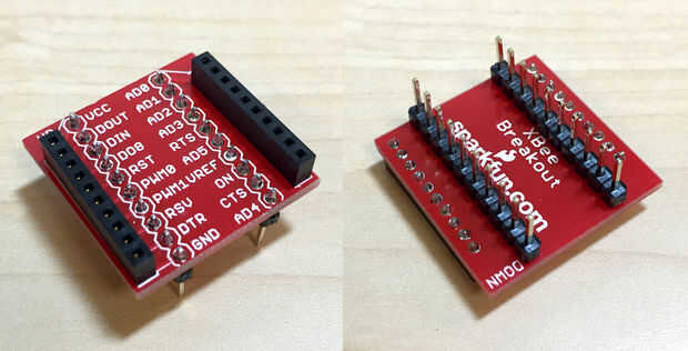 Conectar el módulo XBee a pines Serial en la parte posterior de su dispositivo de Kinoma crear, usando una tabla de breakout. Asegúrese de primero la soldadura de conectores y encabezados.