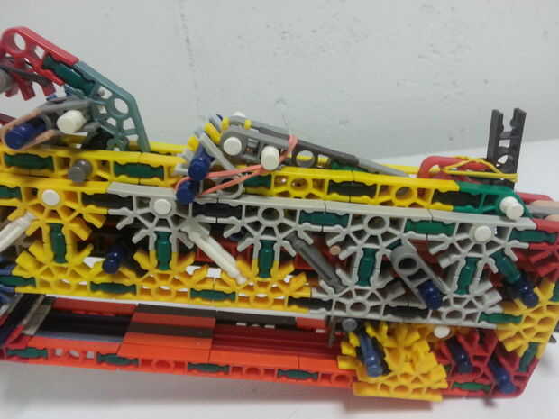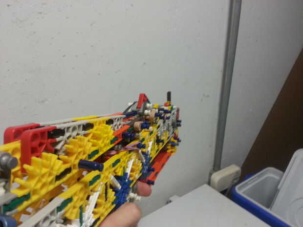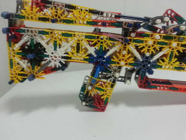 ¡ Hola! Ha sido un rato desde que empecé este proyecto (originalmente llamado rayo) ahora tal vez hace tres semanas y ahora te muestro el primer prototipo de trabajo, Zip. Para empezar me decidió comprometerse en un arma más pequeño más enfocado en hacer un buen trabajo bomba acción y felizmente puedo decir que clavó esa parte. Creo que me pasé al menos dos semanas tratando de construir un compartimiento extraíble montado lado para esta pistola, pero para ser perfectamente honesto, que estoy harto de luchar con esta cosa. Planeo hacer un removible extendido revista después de tomar un largo descanso agradable de esta arma pero realmente quiero tener esta pistola perfeccionada para K'nex guerra 2013 así que espero que se va hacer por entonces. De todos modos en las estadísticas...