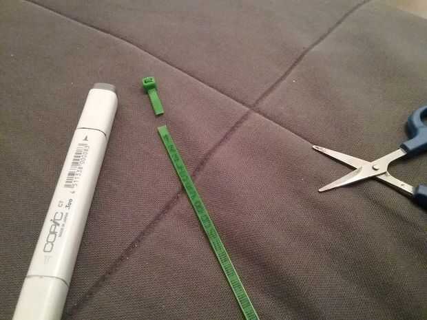 Esta bola es de abrazaderas de plástico (zap correas) y tiene una bonita coloración matemática.Se necesita:60 lazos pequeños zip (correas, ataduras de cables plásticas de zap).  Ataduras de cremallera grande son más difíciles de hackear para este pro