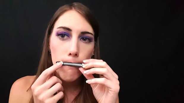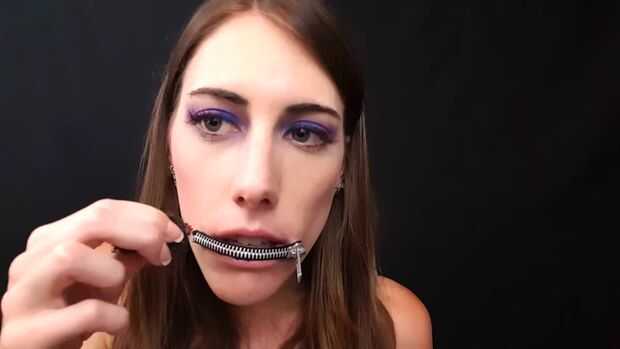 Coloque la cremallera sobre el chicle luego con un punteado rojo alrededor de la cremallera y esponja para la irritación.