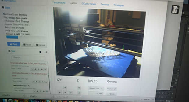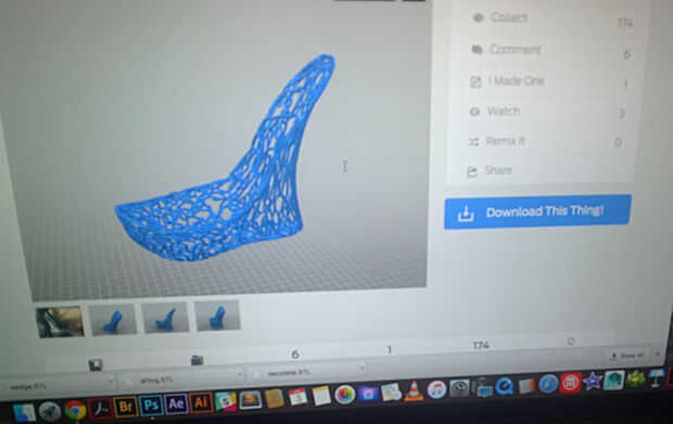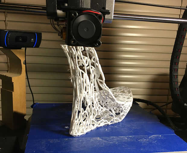He encontrado un modelo de zapato de encaje precioso en Thingiverse enlace de artista Pasquale Abbattista, que va por boeing787. Imprime esta en PLA blanco a 200 grados, llevó unas 4 horas por zapato en mi impresora. El timelapse video fue creado automáticamente por el octoprint en un frambuesa pi.