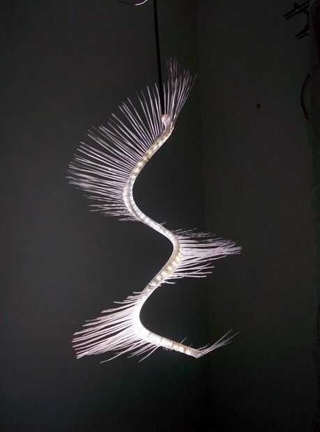 La inspiración para esta lámpara volvió tiempo ciudad de Nueva York cuando en 2012 visitó Estados Unidos para un trabajo oficial. Había los puestos callejeros con ataduras de cremallera colores. Esa fue la vez cuando me preguntaba si los postes pueden encender para arriba de insight.
