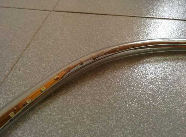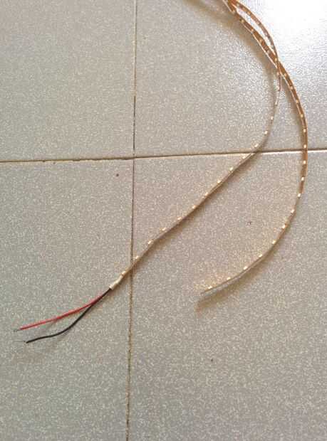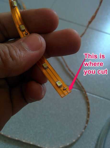 - Medida de la tira llevada a la longitud de la tubería. Usé tira doblada para hacer doble porque quería que la luz sea brillante. Cuando usted decide la longitud Asegúrese usted cortar de uno de los lugares designados en la tira de led. Puede cortar el tubo para ajustar la longitud de tira de LED o viceversa sabio.