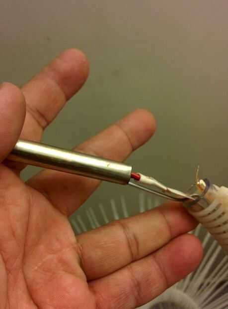 - Doble el cable de tierra leerlo hacia fuera del otro extremo del tubo con pinzas.