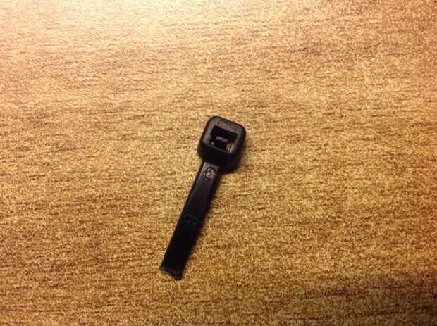 Cortar la parte superior de una brida de plástico como se muestra en la imagen y un hilo de rosca a éste.