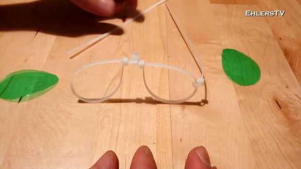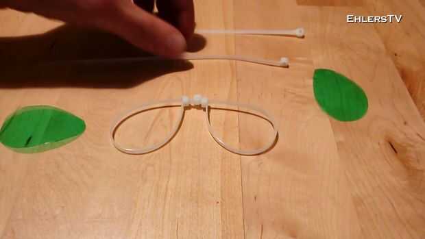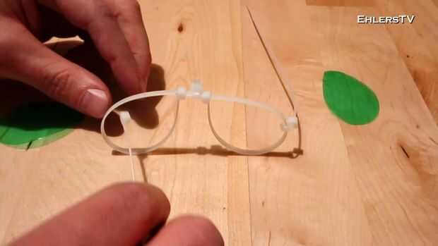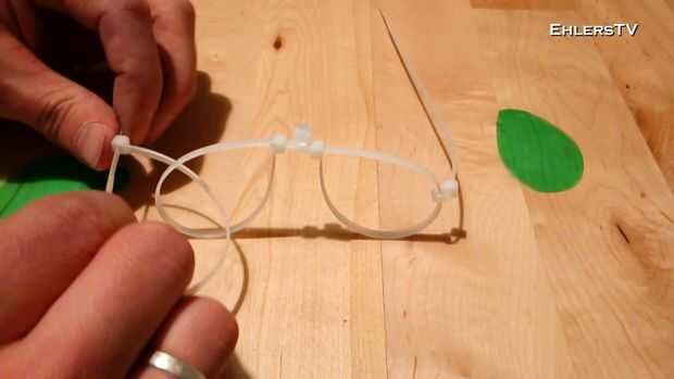 Para hacer los brazos de espectáculo tomar dos abrazaderas de plástico, poner uno (cada lado) a través de las monturas de las lentes y tire del cortocir...