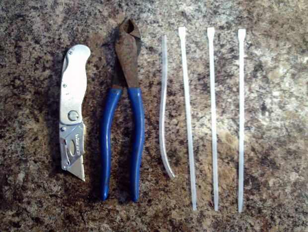 3. alambre cortadores o cuchillo. Corte el tubo y corte el exceso de la amarra.