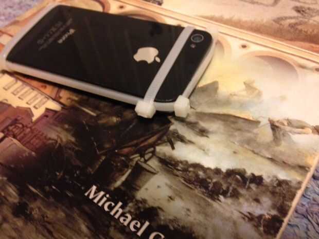 Una vez que tienes todo cortado hacia abajo, prueba el mango, asegurándose de que usted puede agarrar el teléfono cómodamente. También asegúrese de que todos los lazos zip están ajustados y que no bloquean el acceso al botón home. También asegúrese de que los lazos zip no cubren la cámara.