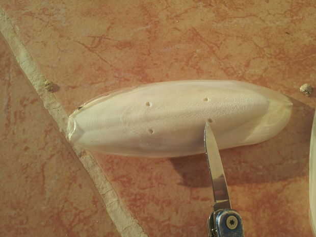 Asegúrese de que los agujeros no van más allá de la capa dura del hueso de sepia