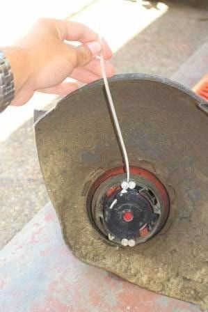 Como se puede ver en la primera foto, la amarra que utilicé era realmente demasiado larga. Utilice una cuchilla lateral para recortarlo. Asegúrese que el cordón esté lo suficientemente corto como para funcionar sin raspar demasiado contra los lados.