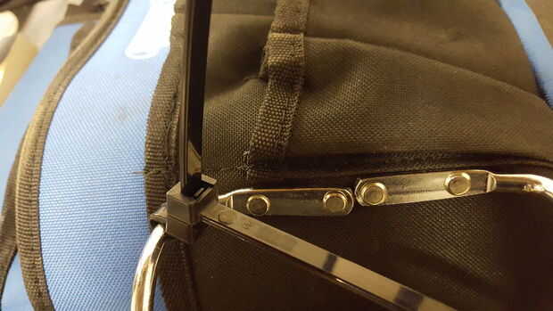 Ahora deslice su stock de abrazaderas de plástico hacia la bloqueada apuntando hacia abajo, de esta manera no bloquee y no se deslice fácilmente.