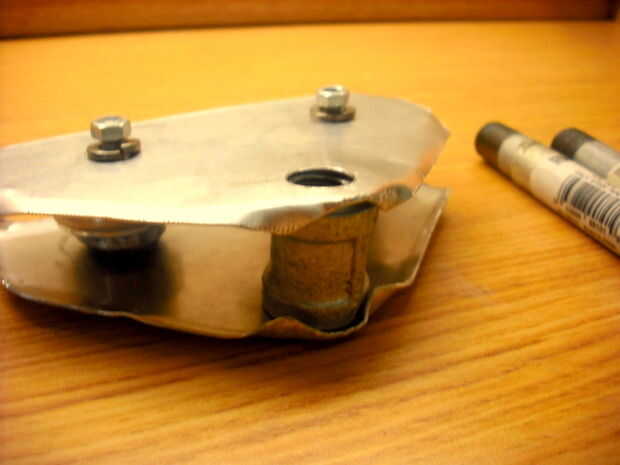 Si su uso de un 1/2 pulgada broca para taladrar el agujero para su handels, puede ignorar este apartado. Si su uso un poco más pequeño y termine de taladrar los orificios para su handels, pero su demasiado pequeño, entonces usted necesitará conseguir su dremel con broca lija pequeña. Utilizar la lija poco para moler hacia fuera el agujero que perfora, en movimientos circulares. Seguir moliendo hasta que fácilmente puede colocar la pieza de tubo de acero en el agujero. Tenga cuidado de no hacer el agujero demasiado grande. Es mejor tener un apretado luego colocar uno suelto, como esto puede causar inestabilidad en la unidad.