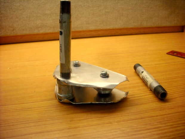 Para mantener el conector del tubo con los agujeros, atornille una de las longitudes de tubería en el conector. Apriete los pernos con la llave inglesa o alicates y destornillador. Por último añadir el 2 º pedazo de tubo de acero al otro lado.