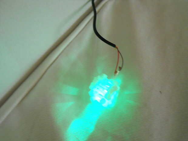 Sólo necesitará el negro/marrón y el cable rojo para encender el LED, por lo que tendrá que cortar el amarillo/blanco y el cable verde para que todo lo que queda es negro/marrón y rojo.