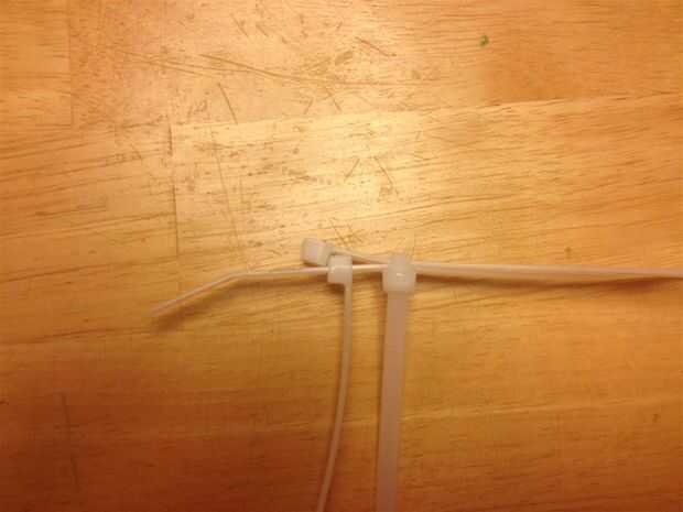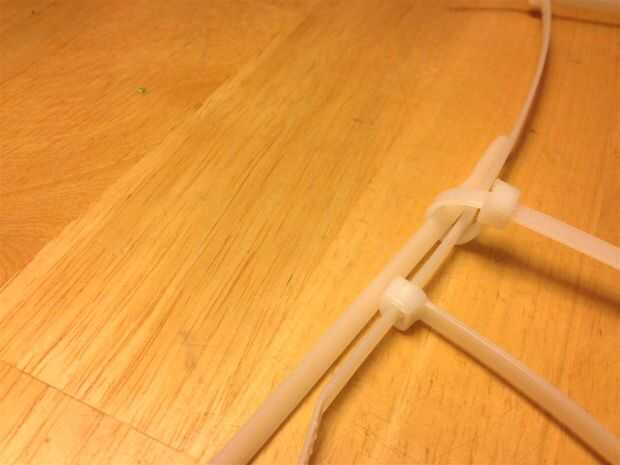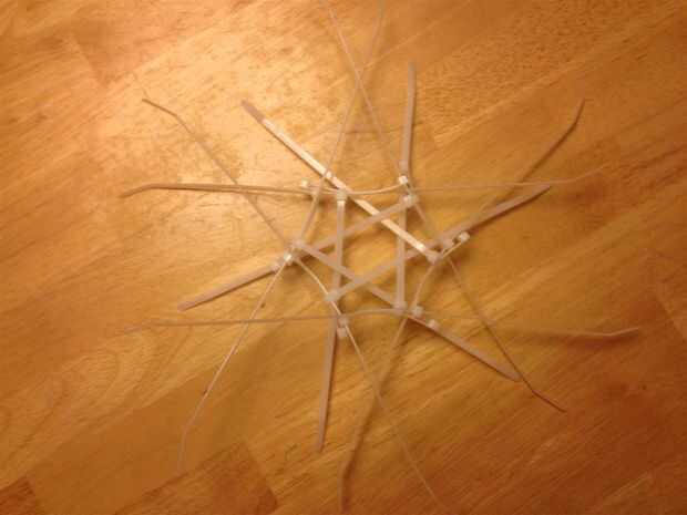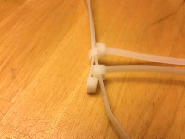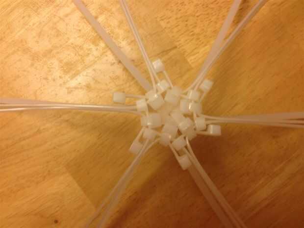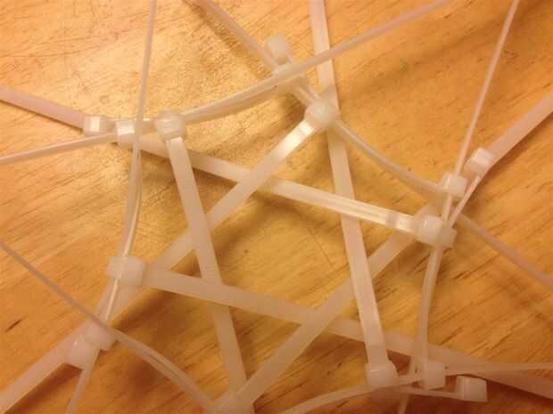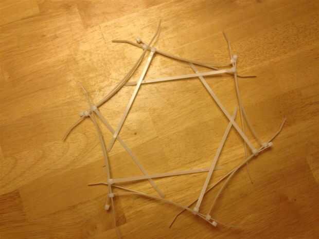 Los amarres de cable que se ven obligados hasta por el centro del hexágono pueden ser recogieron y atados con cinta de bandas elásticas. Como la estructura es más compleja, menos los lazos de la manera, mejor.