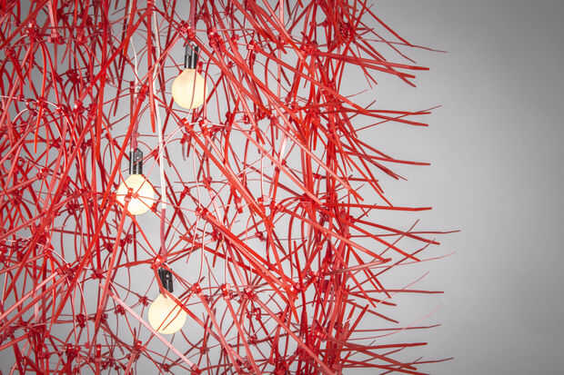 ¿Qué hacer con un viejo Desklamp inusitado, en cesta de huevos y algunas ataduras de cremallera?Paso 1: Los materiales-Desklamp sin usarCesta de huevos-Abrazaderas de plástico (80 PC rosa y magentas 150 piezas)Paso 2: Preparar la canasta de huevos pa