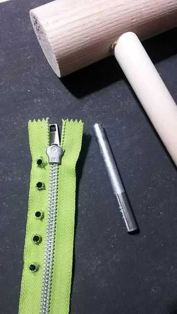 Pase la anilla por el agujero y utilizar la herramienta de ojal para fijarlos.