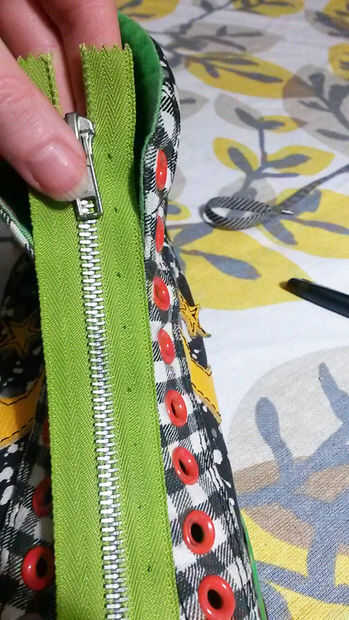 Marca de su cremallera al lado de cada ojal del zapato. (Si los ojales de los zapatos son rectos, podría Coloque la cremallera debajo y poner una pluma a través de ellos para marcar la cremallera. Mis zapatos tienen una curva, así que poner la cremallera hasta el borde y donde marcar el cierre de ojos).