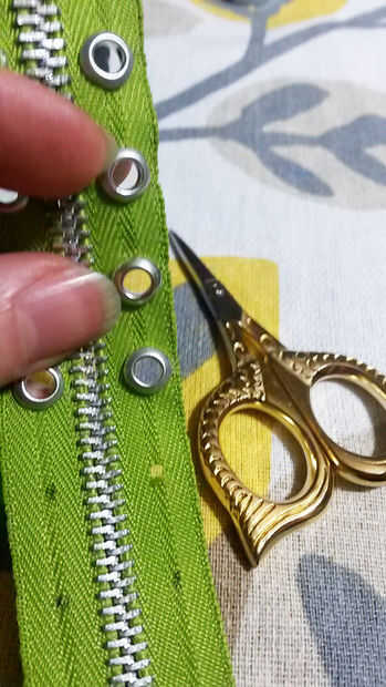 Continúe hasta que hayas aplicado todos los ojales a un lado.
