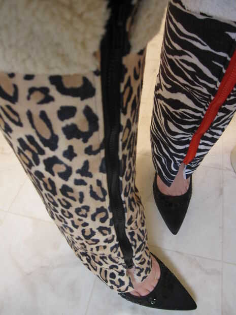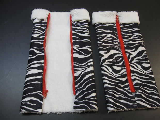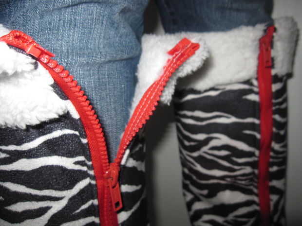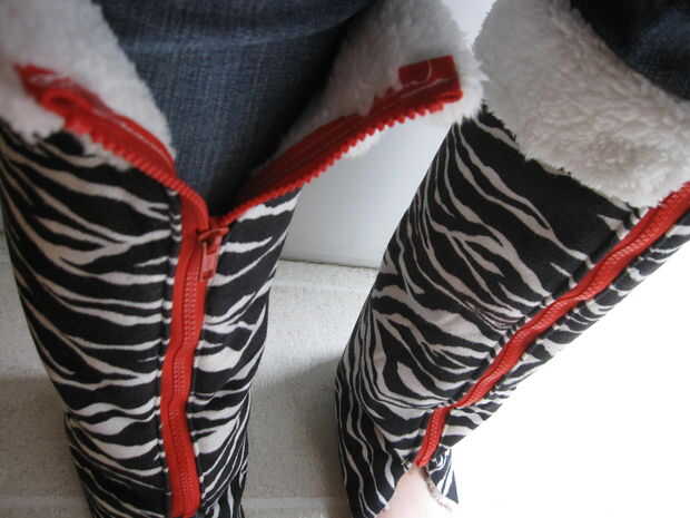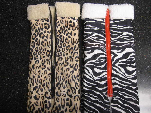 Es necesario tomar medidas antes de comprar los suministros. Simplemente Mida su pierna de 1 pulgada por debajo de su tobillo a la parte superior de la rodilla. Luego Mida alrededor de la pantorrilla en la parte más gruesa y agregue 1 pulgada para las costuras. Utilizan estos números para decidir cuanta tela comprar. Para la longitud de la cremallera, restan 5 pulgadas de la medida de la altura. Hice esto por dos razones: para permitir un 2 pulgadas de apertura en la parte inferior para un mejor ajuste y dejar suficiente tela en la parte superior doblar sobre un pun # o. Esta parte deba modificarse basado en longitudes de cremallera disponible.