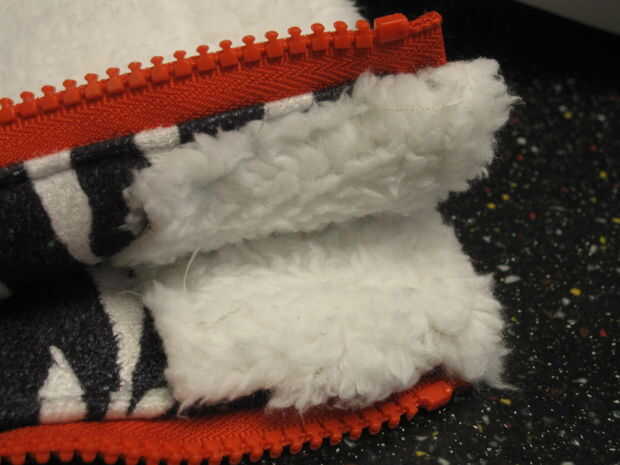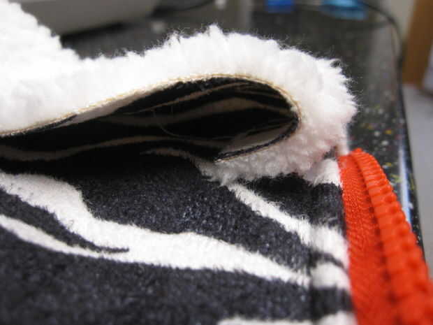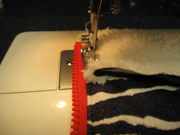 Doble hacia abajo la tela para que el doblez es 1/2 pulgada superior de la cinta de la cremallera doblada.