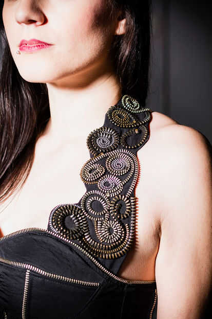 La inspiración para este vestido siguieron la primera vez que vi este producto de fibra óptica en acción. Estaba en una fiesta cuando vi una floración de enfoque de fibra óptica de medusas, y crearon un efecto tan hermoso que yo sabía que tenía que c