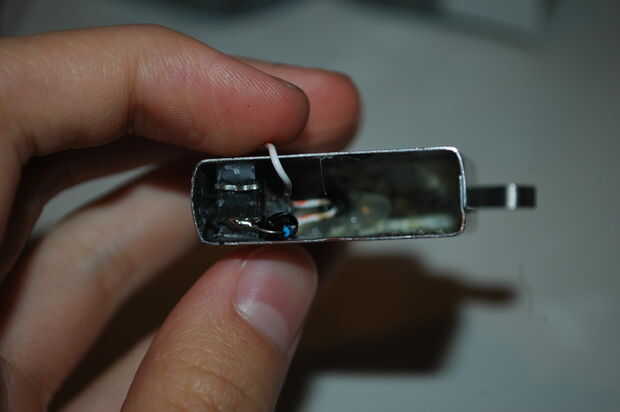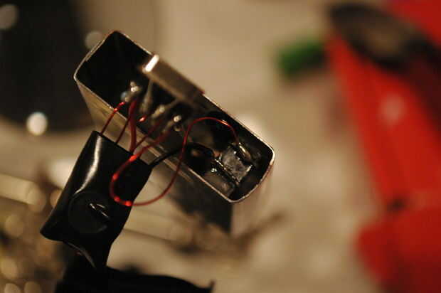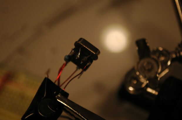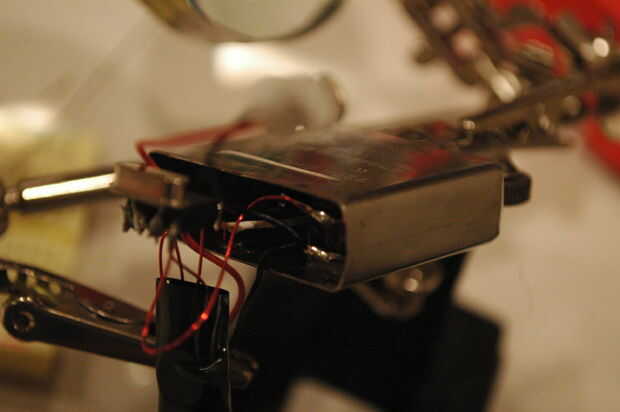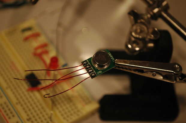 - La soldadura de los alambres finos para el módulo de RF en lugar de las piernas y cubrir el dispositivo de cinta aislante.