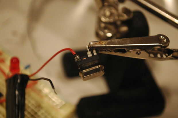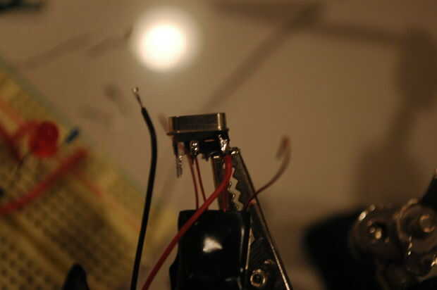 Antes de continuar a este paso, asegúrese de que su circuito y el código funciona en un protoboard. Una vez que empiece este paso hay no hay vuelta atrás: el chip será extremadamente difícil reprogramar una vez rasgar sus alfileres.