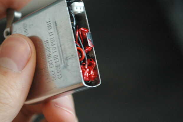 Este ahora puede ser colocado en cualquier caso Zippo y utilizado. Sólo necesitará cargarlo de vez en cuando, porque el circuito es sobre todo apagado.