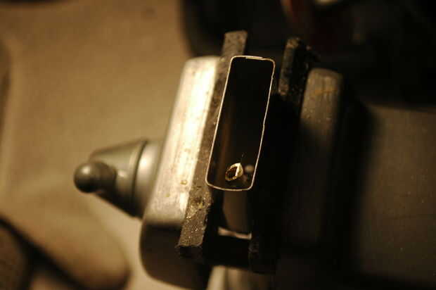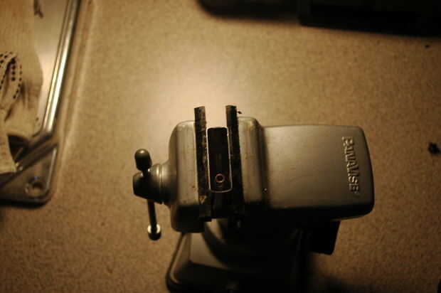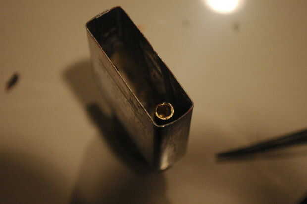 - Utilizando la herramienta de corte / lijar poco, arena, el pedernal del tubo manteniendo horizontal el Dremel. Será difícil y posiblemente peligroso. Ser paciente, como están intentando a arena un centímetro entero de latón.