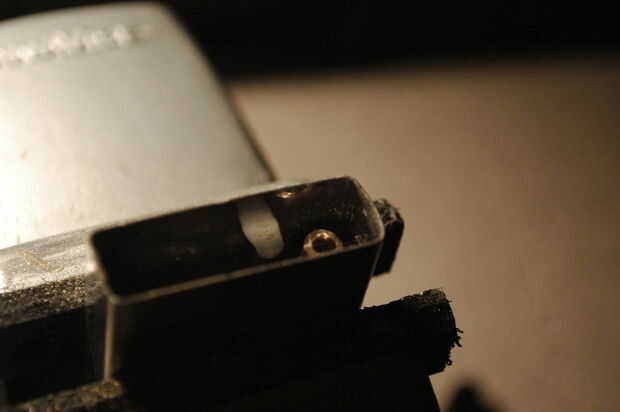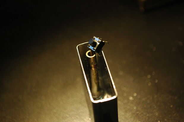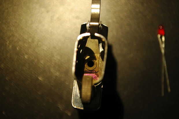 Decidí usar la rueda de pedernal/flint como un botón y un agujero junto a la mecha como la notificación LED.