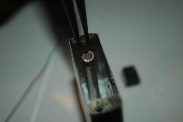 - Mantenga el martilleo y retirar el clavo hasta el agujero es lo suficientemente ancha para el LED.