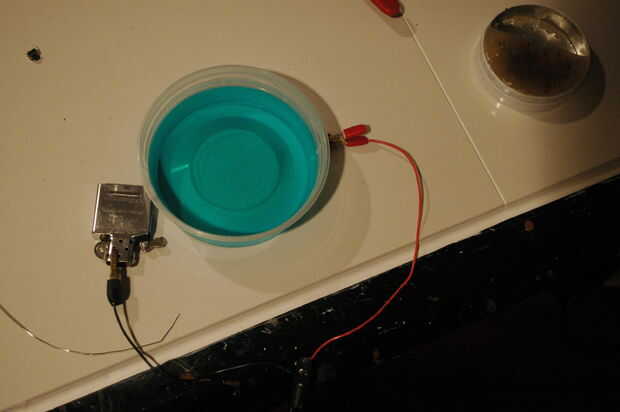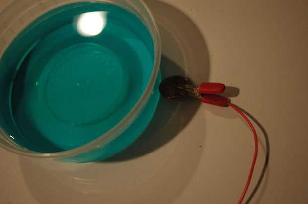 - Pegar el inserto y el cobre en el líquido hasta que algo sucede. No respirar los vapores.