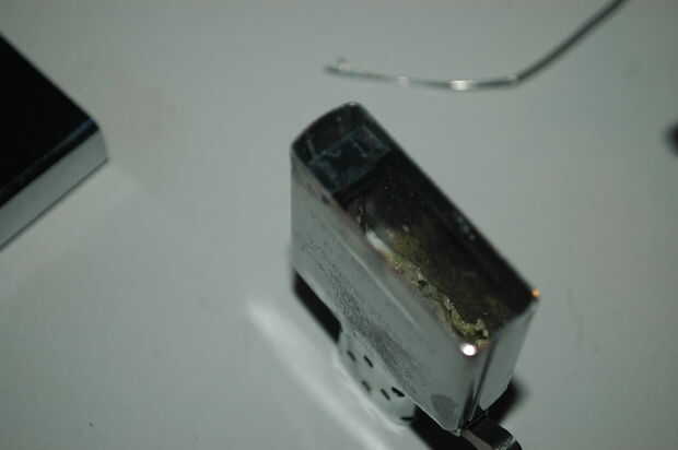 - Corte el cable de 18 AWG justo donde se encuentra con el borde del tubo del pedernal.