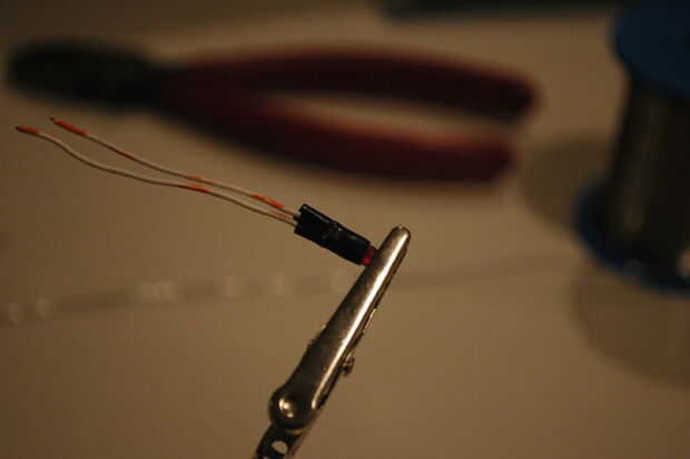 - Soldar un alambre fino a los conductores. Utilicé cable CAT5.